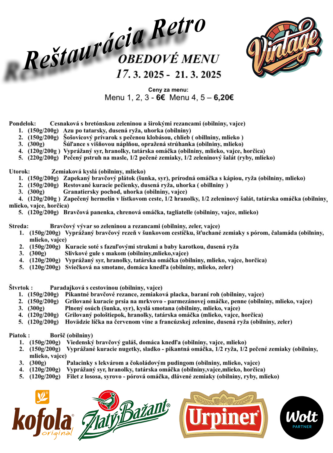 12. týždeň Naše obedové menu